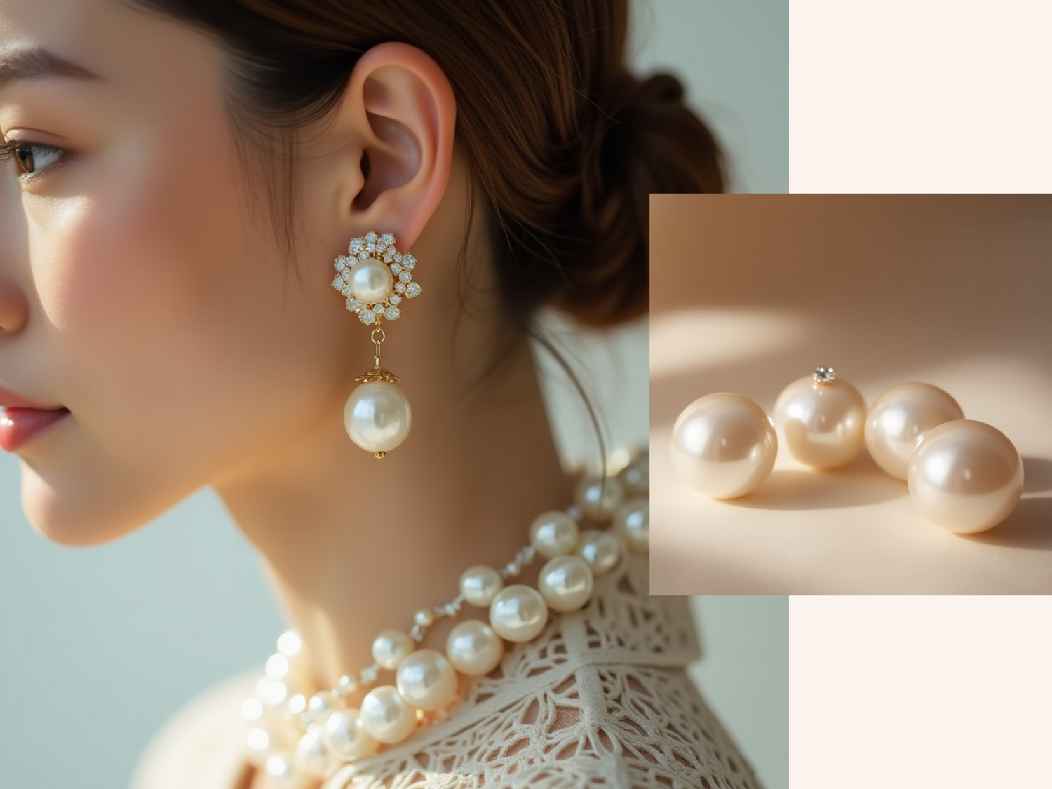 French Retro Fresh Water Pearl Women's Senior Niche 18K Gold Zircon Stud Earrings
