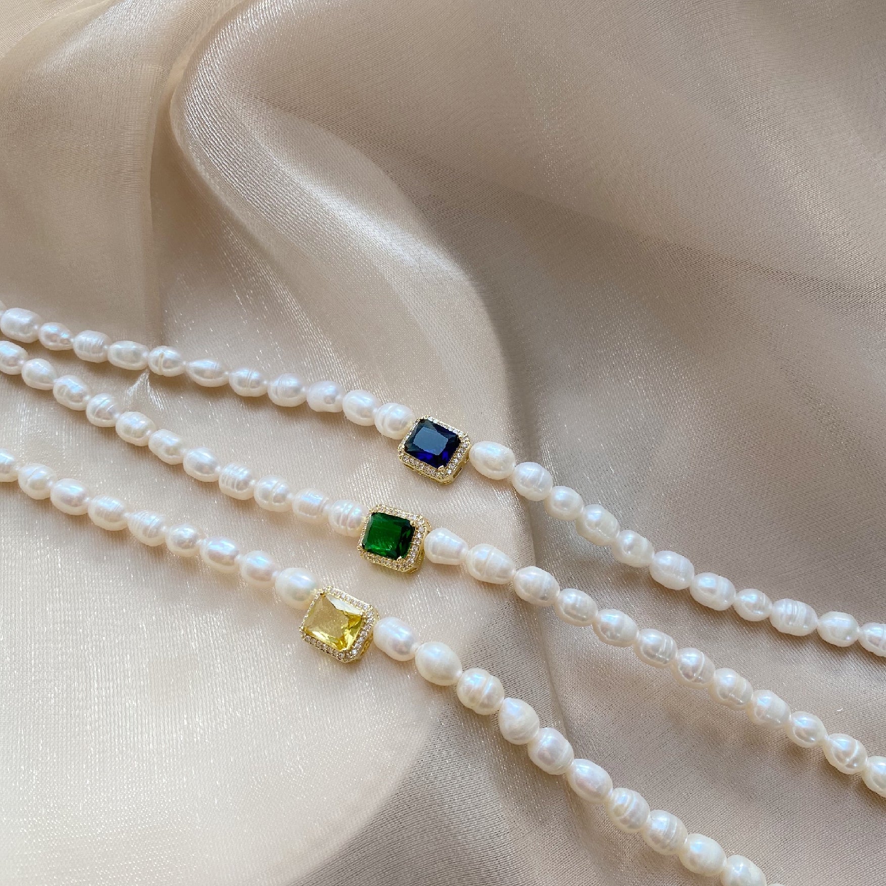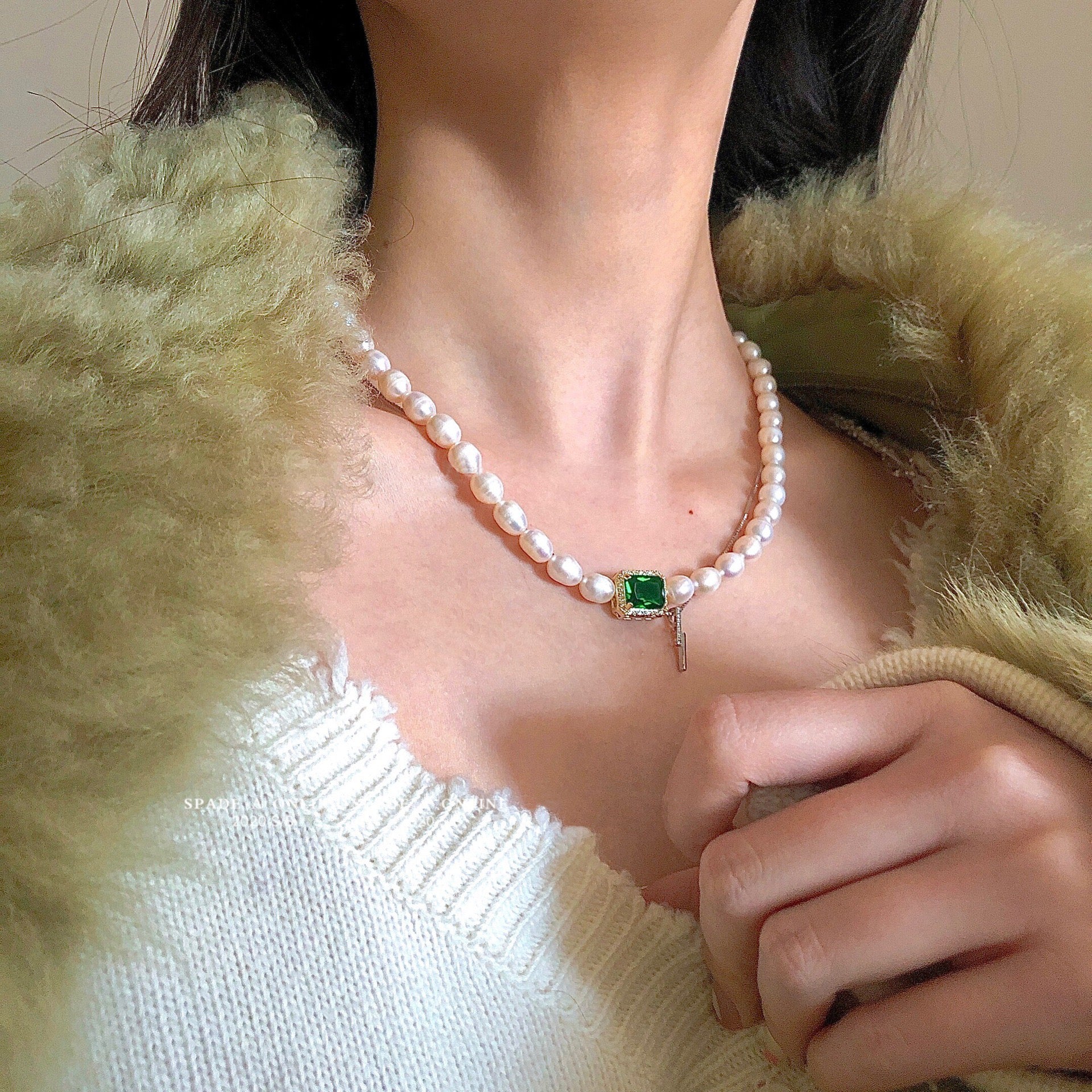 Female freshwater pearl gem necklace