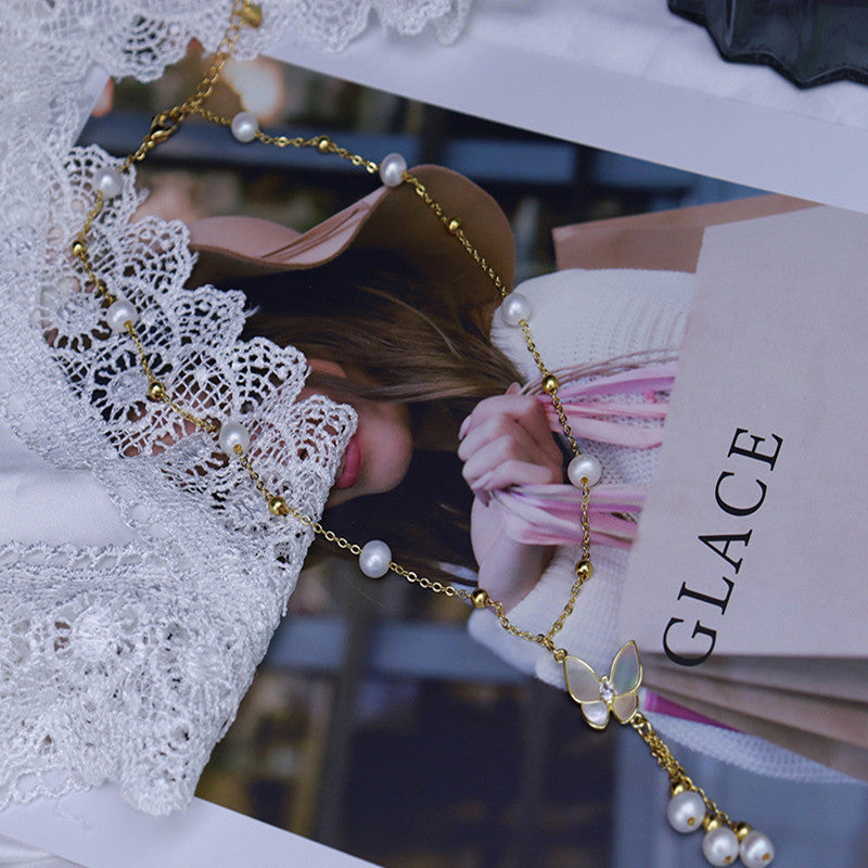 Natural Freshwater Pearl Necklace 6-7mm Butterfly Tassel