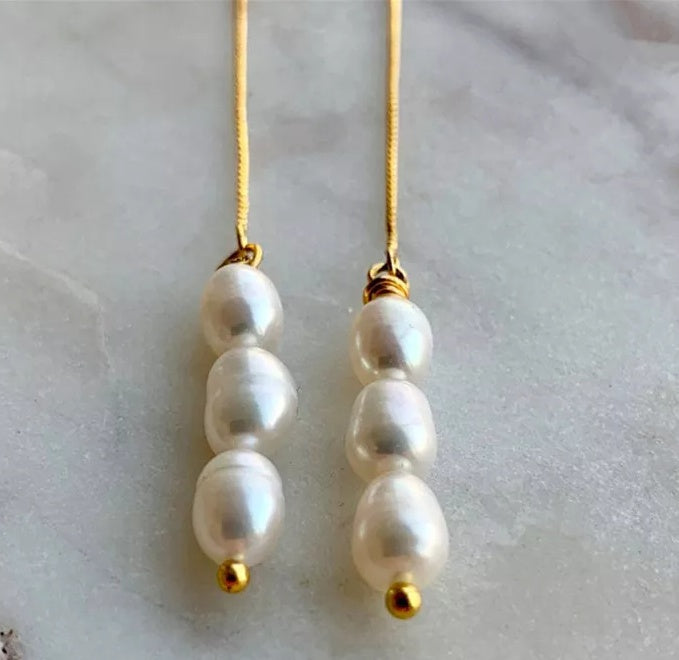 Real Gold Earline Natural Freshwater Pearl Earrings